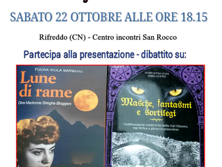 La prima illustrerà incontro il romanzo "Lune di rame" mentre i secondi proporranno una serie di opere sui racconti magici della val Chisone tra cui spicca "Masche, fantasmi e sortilegi".