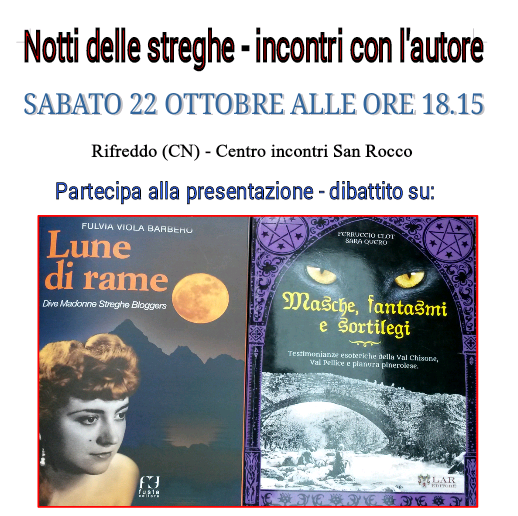 L'incontro sarà anche l'occasione per discutere ed interrogarci sulla genesi di queste figure e su come mai esse continuino ad avere così tanto fascino anche ai giorni nostri. L'appuntamento è a Rifreddo alle 18.30 di sabato 22 ottobre presso il centro incontri San Rocco. Per maggiori informazioni www.lenottidellestreghe.it oppure contattare il 328.8815126
