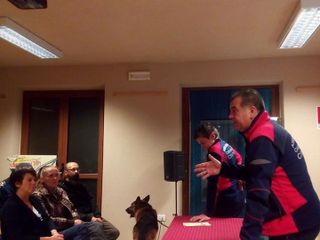 Nel corso della serata sono state illustrate le tecniche d'addestramento e di allenamento dei cani e dei loro conducenti, includendo una serie di immagini imperniate sulla ricerca di persone scomparse in superficie e sulla ricerca nelle macerie. Conducenti e cani, inoltre, periodicamente devono rinnovare il loro brevetto per poter essere attivi durante gli allarmi. Curioso notare come qualsiasi cane potenzialmente possa diventare da ricerca, in base alle proprie attitudini.