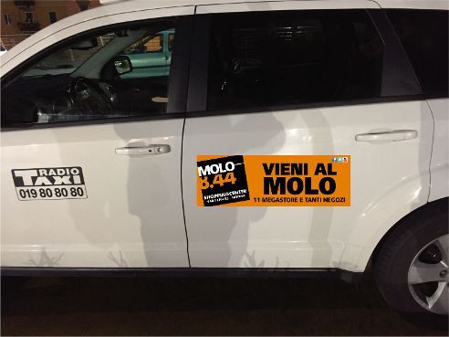 Dopo tanti anni i Taxi savonesi cambiano “veste” ed indossano i colori dello shopping center Molo 8.44 di Vado Ligure, che con i suoi 11 megastore e tanti negozi, è il centro commerciale più importante della regione quanto alla presenza ed alla superficie dedicata all’abbigliamento ed alle medie strutture di vendita.