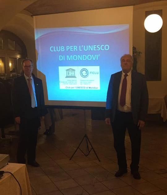 Relatori della serata il Presidente Maurizio Davico e il Professor Teresio Sordo che hanno illustrato ai presenti le future attività del Club per l’UNESCO di Mondovì.