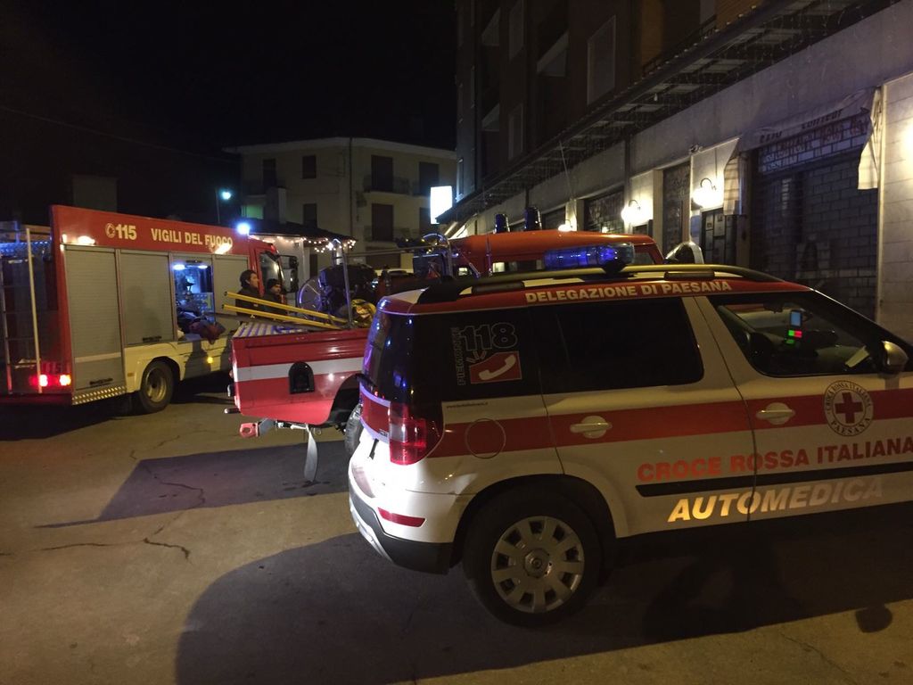 Paesana, intervento dei vigili del fuoco e del 118 in Piazza Vittorio Veneto: in pericolo un'anziana donna (GUARDA LA GALLERY)