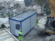Gli allacciamenti in loco sono stati eseguiti dalla Protezione Civile, i cui volontari sono abilitati per svolgere mansioni di elettricista, idraulico, meccanico, conducente di muletti e hanno dunque scaricato, piazzato e allacciato i container alla rete elettrica, fognaria e idraulica.