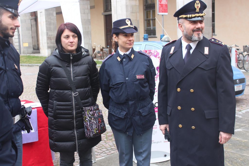 Presente allo stand anche Franca Giordano, assessore alle Pari Opportunità del comune di Cuneo: "Come amministrazione, e membro della rete antiviolenza, abbiamo immediatamente aderito all'iniziativa della Polizia. Momenti come questo sono importanti per unire e presentare alla cittadinanza gli attori coinvolti: è bene parlare di un amore pulito, ed è giusto che passi il messaggio che la violenza è solo desiderio di possesso, e non sentimento o passione."