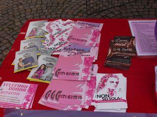 Nello stand, tutti i contatti delle associazioni e delle forze dell'ordine coinvolte nell'attività di contrasto, raccolti in una serie di volontani informativi, anche in altre lingue (così da venire in contro a ogni tipologia di utenza).