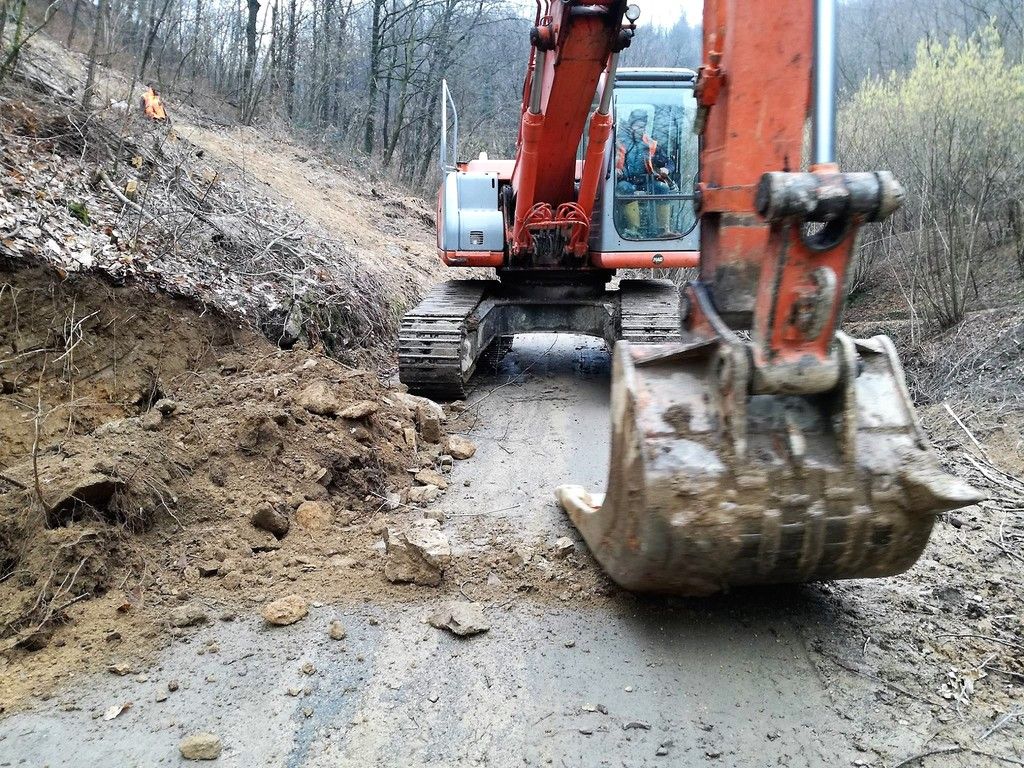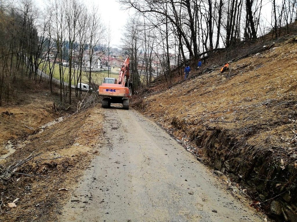 Le immagini dei lavori di ripristino della frana in via Bricco Luciano (foto tratte dal profilo Fb istituzionale del Comune)