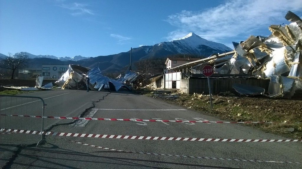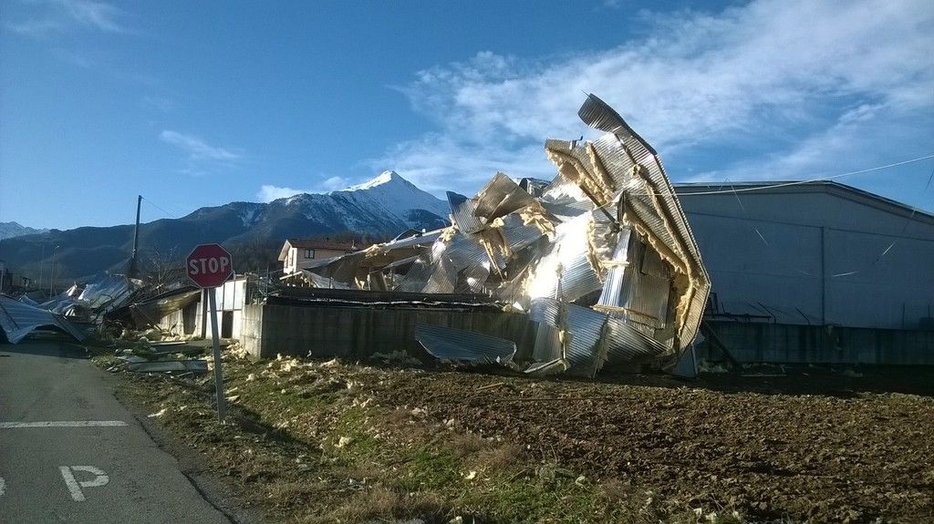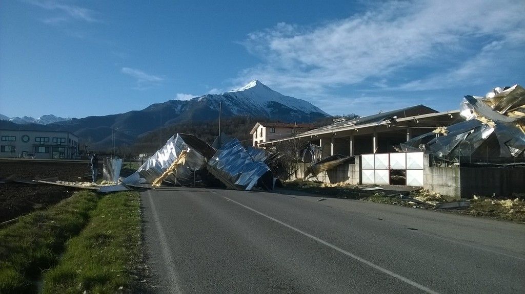 Moltissime le tegole scagliate via e diversi tetti di capannoni divelti: l’Amministrazione Comunale chiederà presto lo stato di calamità naturale, visti i gravi danni causati a molte aziende.