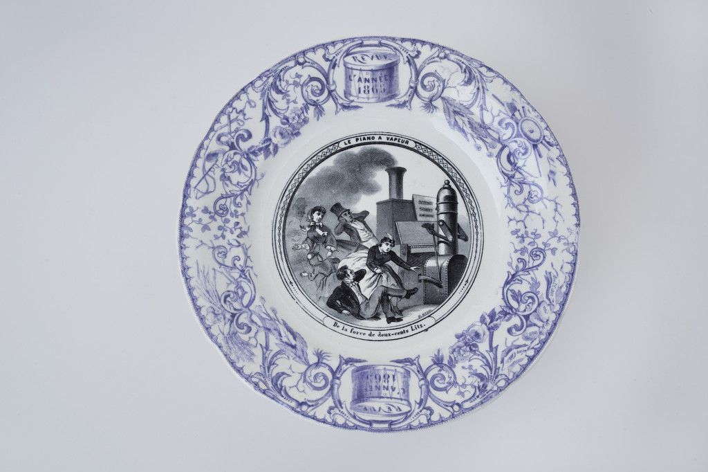 L’invenzione e l’utilizzo del metodo di decorazione della ceramica detto transferprint portò alla produzione di migliaia di piatti, prevalentemente da dessert, dedicati a un tema specifico (come la caccia, le elezioni, il servizio militare e così via). Fra questi temi è presente anche il futuro immaginario, visioni, cioè, di un fantastico avvenire nel quale si supponeva dovessero realizzarsi nuove forme di vita.