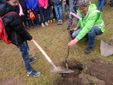 Passandoci di mano la pala, aiutati dai volontari dell'0Associazione Mastro Geppetto, tutti insieme abbiamo scavato le buche e piantato due alberelli di "Ramasin", susini originari della Siria e inoltre alcune piantine di fragole.