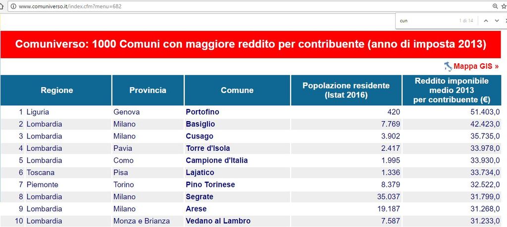 Infine, dato statistico aggiuntivo, non bastano “due Roddi” per fare un Portofino. Il borgo rivierasco infatti, con i suoi 51.403 Euro, svetta nella lista italica. Staccando nettamente le due milanesi sul podio (Basiglio e Cusago) , decisamente “inferiori” per reddito.