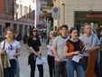 Il pomeriggio è poi proseguito per le vie del centro storico di Breo: partendo da piazza Martiri della Libertà, il coro ha percorso via Piandellavalle e via Sant'Agostino fino a giungere in piazza San Pietro, dando vita a una sorta di flash mob musicale, capace di suscitare l'attenzione e la curiosità di residenti e passanti, che hanno apprezzato la novità.