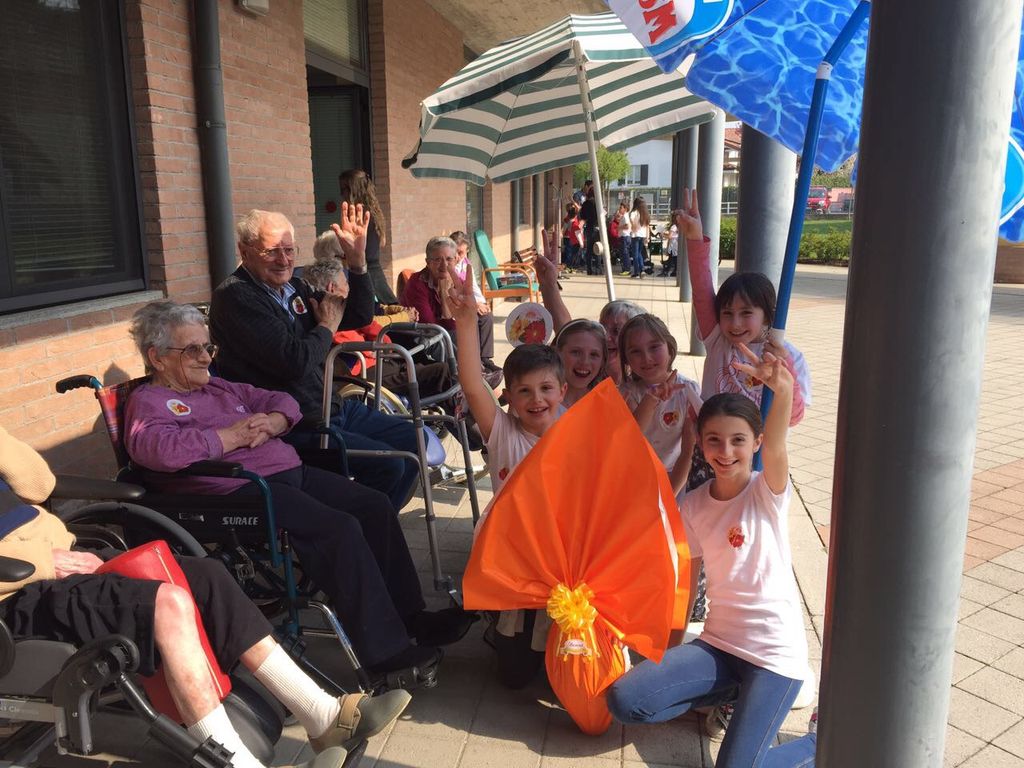 La squadra vincente, quella delle margherite, si è accaparrata un grande uovo di Pasqua che i bambini hanno condiviso volentieri con tutti. Un sostanzioso e prelibato buffet preparato dallo staff della casa di riposo, musica e allegria hanno rallegrato il pomeriggio.