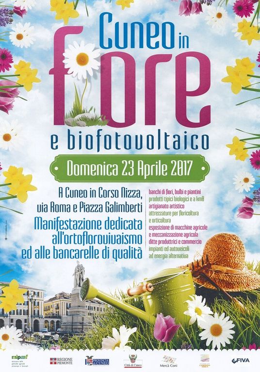Quest’anno l’ormai tradizionale appuntamento primaverile “Cuneo in Fiore e Biofotovolaico” cambierà la dislocazione degli espositori e la durata della manifestazione. In Via Roma saranno posizionati· i banchi di fiori, bulbi e piantini seguiti dai produttori ed installatori di impianti per la produzione di energie alternative, alternati da “creativi” di ogni tipo, artigiani, artisti ed hobbisti.
