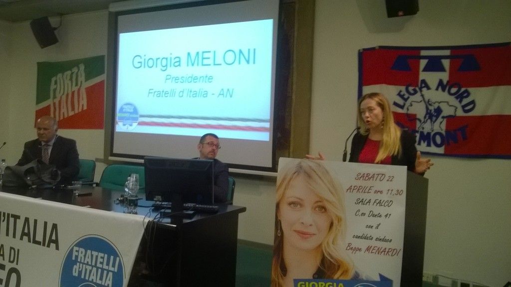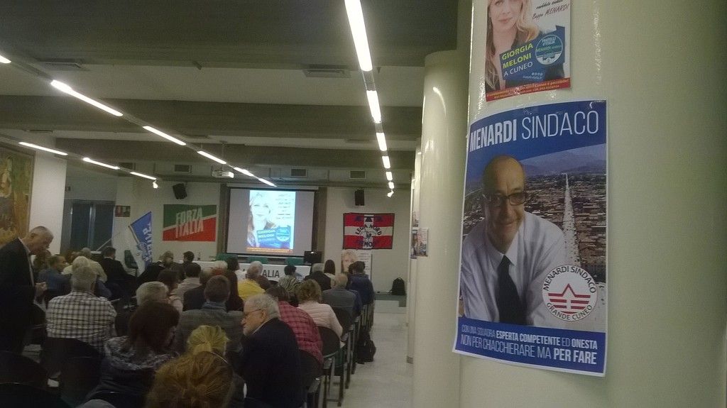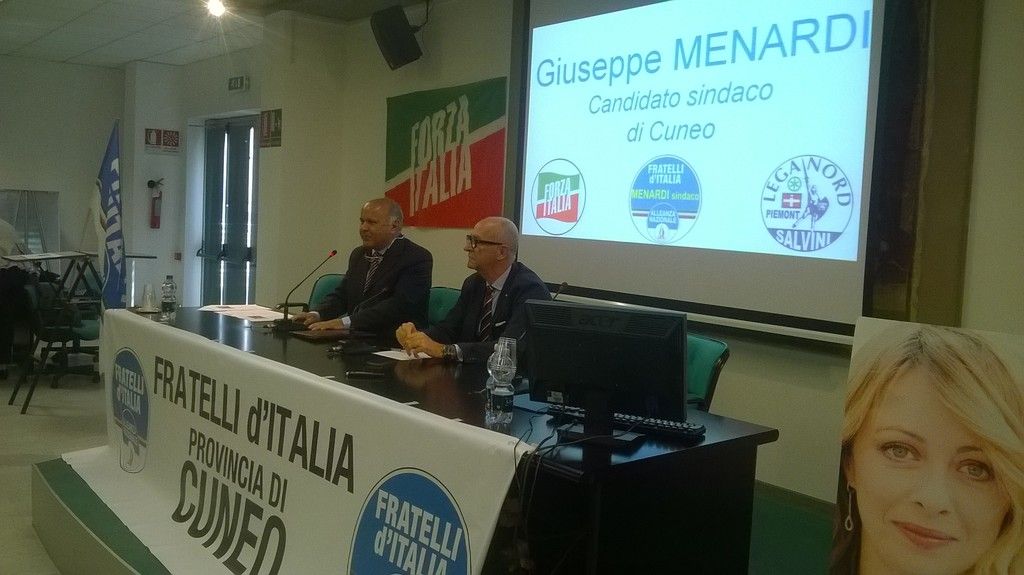 «Un grande in bocca al lupo a Beppe Menardi per una campagna elettorale che si preannuncia entusiasmante e che vedrà Fratelli d'Italia in prima fila - con queste parole la Meloni ha chiuso l’incontro del centro-destra cuneese - Menardi è portatore di un preciso modello di città, contro un centro-sinistra privo di visioni, suggestioni e idee e che si immiserisce nel ruolo dell’ordinaria amministrazione. Ci vuole ben altro che ordinaria amministrazione per Cuneo e noi, con Menardi, abbiamo le carte in regola per costruire il futuro di questa città. Mi pare interessante che, in un territorio in cui "cadono i ponti", noi candidiamo un ingegnere.»
