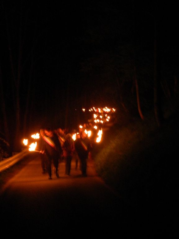 La fiaccolata ha percorso la strada da San Antonio fino a Tetto Pilone e ritorno, accompagnata da suonatori e cori partigiani.