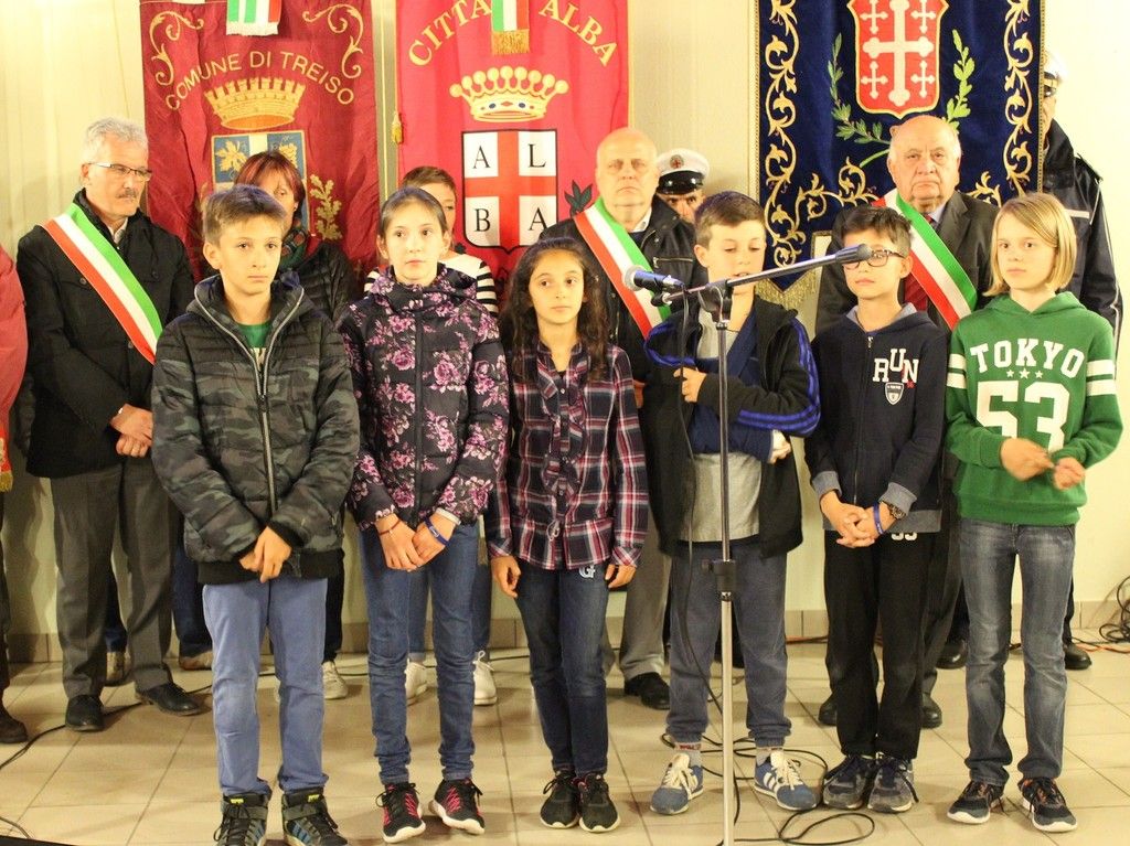 La cerimonia coordinata dall’Assessore alla Cultura del Comune di Alba Fabio Tripaldi è iniziata con l’Inno di Mameli e la benedizione del parroco di Treiso. Poi, i bambini della scuola elementare di Treiso hanno ricordato i partigiani che hanno sacrificato la propria vita per la libertà.