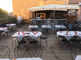 Se lo si preferisce, si potrà salire al piano superiore dove c’è la sala ristorante più riservata con 45 posti a sedere oppure, con la bella stagione, ancora più su, sulla esclusiva terrazza da dove poter godere di una meravigliosa vista sulla città. Sulla piazza, nelle sere estive, è disponibile l’ampio dehor.