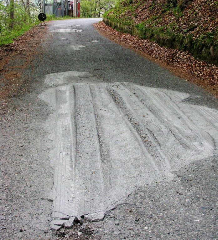 Purtroppo, qualche automobilista si è trovato una bella sorpresa risalendo la strada del Vallone, andando a sprofondare nel cemento fresco e lasciando dei solchi che, indurendo, hanno formato dei veri e propri ‘binari’. Probabilmente o la strada è stata riaperta troppo presto o il getto di cemento è stato fatto all’ultimo momento, dal momento che l’ordinanza del sindaco prevedeva il divieto di transito per tre giorni”.