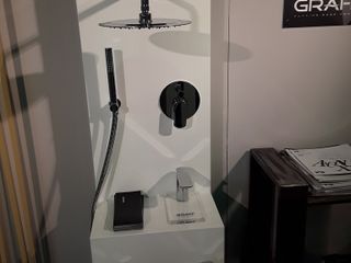 Presso lo stand anche sanitari con sistemi di scarico "rimless" ed elementi di rubinetteria della Graff (USA), con procedimento di cromatura innovativo. Presso lo Showroom in via Traversa di Barge 6 a Revello anche piastrelle per pavimenti e rivestimenti e materiali per l'edilizia.