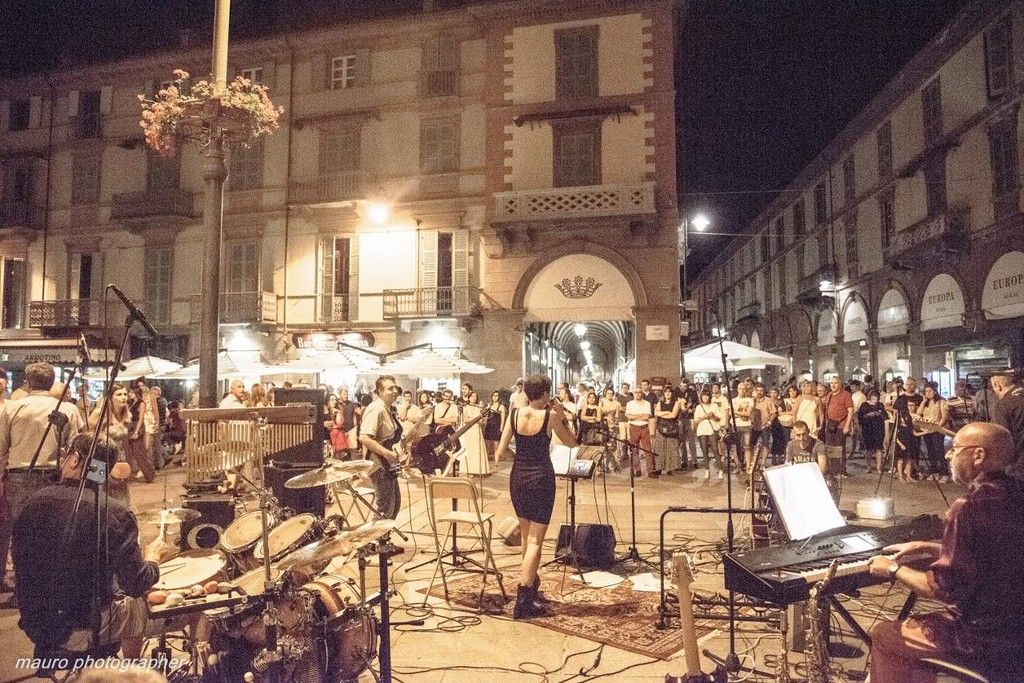 Musica diffusa in tutta Saluzzo, sabato 17 giugno, dall’alto centro storico al basso centro cittadino, con grandi concentrazioni intorno ai gruppi di maggior richiamo e migrazioni continue da una postazione all’altra.