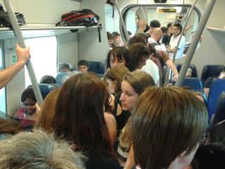 Il Torino-Savona delle 18.35 è rimasto fermo, con le porte chiuse, per più di un’ora a Trofarello. Segnalati anche bambini piccoli in lacrime per via del caldo e della calca
