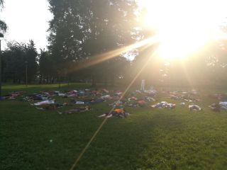 Dalle 6.30 alle 7.15 circa, i partecipanti hanno accolto il sorgere del sole e della luce immersi nel verde del parco della Resistenza, a Cuneo.