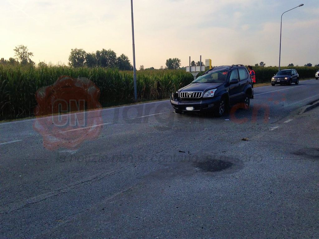 Sulla sede stradale un Toyota Land Cruiser visibilmente danneggiato. L’auto viaggiava in direzione Moretta