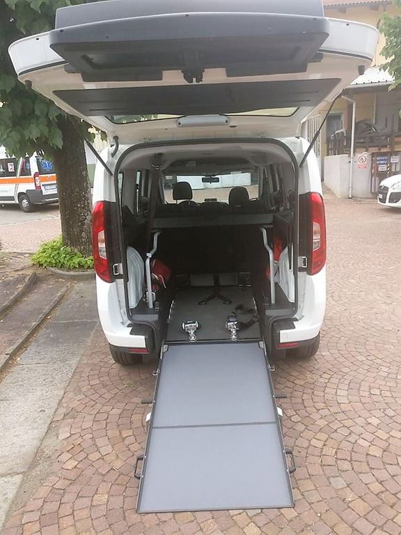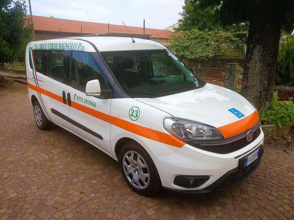 Si tratta di un Fiat Doblò, allestito con una pedana in grado di far salire bordo sedie a rotelle.