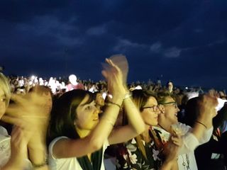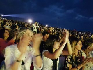 Quasi due ore di musica con “Scriverò il tuo nome tour” in una serata in cui anche il tempo è stato clemente, con un cielo temporalesco che ha rispettosamente ascoltato le note del cantautore friulano permettendo alle oltre 2000 persone accorse da tutto il nord Italia di godere del concerto.