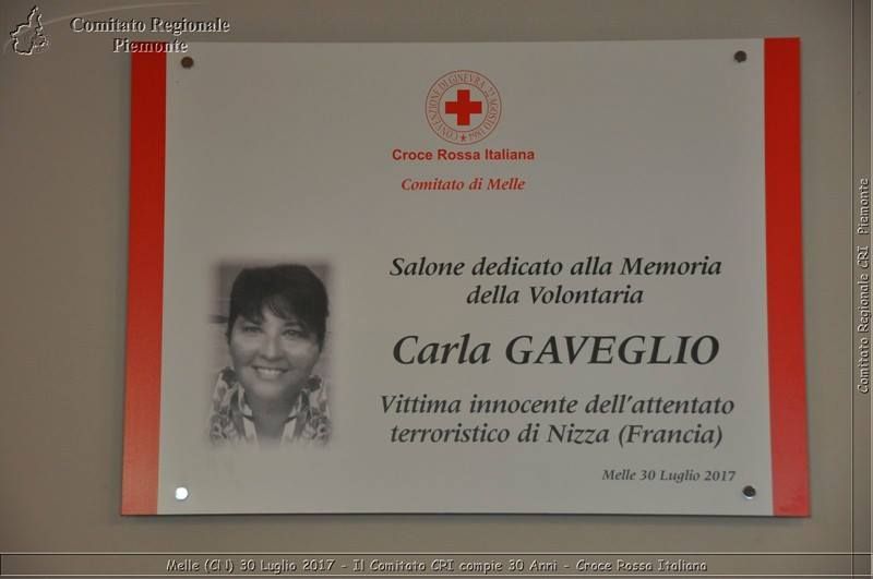 Da ieri, domenica, l’edificio che ospita il Comitato locale di Melle della Croce rossa italiana ha il suo salone “Dedicato alla Memoria della Volontaria Carla Gaveglio, Vittima innocente dell’attentato terroristico di Nizza”.