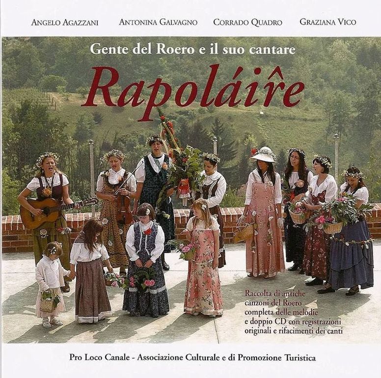Visto che di Roero si parla alle h 15.00 di domenica 27 agosto si aggiungerà alla mostra fotografica la presentazione del libro "RAPOLAIRE", una raccolta di antiche canzoni popolari del Roero raccolte negli anni Settanta e Ottanta dalle maestre Antonina Galvagno e Graziana Vico di Monteu Roero e corredate ora, nella nuova edizione a cura della Pro loco di Canale. Le sorelle Scarsi si esibiranno dal vivo con partiture musicali trascritte dal maestro Angelo Agazzani. Il libro contiene inoltre due dischi con le registrazioni originali di alcuni canti che sentirete.