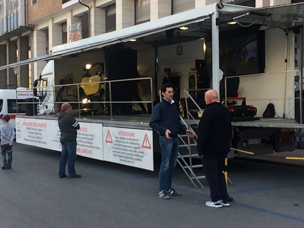 In piazza Europa sarà installato un simulatore di ‘crash test’ e di ribaltamento. Il pubblico potrà capire cosa si prova quando si è protagonisti di un incidente con annesso ribaltamento del mezzo. Grazie a megaschermi e presentazioni multimediali, i visitatori avranno occasione di apprendere facilmente il funzionamento di airbarg e cinture di sicurezza, l’importanza dei seggiolini per i bambini e quanto sia fondamentale, per l’incolumità di chi guida, che i passeggeri seduti sui sedili posteriori usino le cinture di sicurezza.
