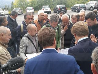 Durante il sopralluogo è stata presa visione della nuova strada a monte, che impedirebbe l’isolamento di Monesi, progetto dell’Ing. Fulvio Fusini, per cui l’iter è già stato avviato dal Comune amministrato dal Sindaco Piero Pelassa: “Con il Comune di Mendatica – ha detto Fusini – abbiamo studiato un tracciato a monte dell’abitato passando all’interno di quei pianori che si trovano sempre all’interno della frana, ma in zona un pochino più lontana. Il progetto prevede due rampe, una di innesto lato Mendatica e una lato Monesi di Triora di raccordo. Il tracciato ha una lunghezza di circa 750 metri.”