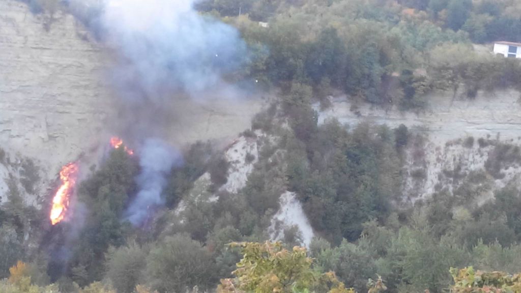 Vigili del fuoco e Aib al lavoro sulle alture di Somano per un incendio boschivo.