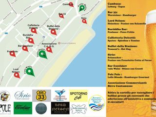 Spiega Massimiliano Semenza, presidente dell’Associazione Commercianti di Spotorno: “Abbiamo realizzato una brochure da distribuire alla clientela con una cartina che segnala i vari punti musicali e i bar che hanno aderito. In questo pieghevole è presente anche una raccolta bollini: chi consuma una birra può applicare un bollino, dopodiché, quando si arriva a cinque o a nove bollini ci si può recare allo stand dell’Associazione Commercianti e Artigiani di Spotorno in piazza e si riceve in omaggio una birra piccola (con 5 punti) o grande (con 9 punti)”.