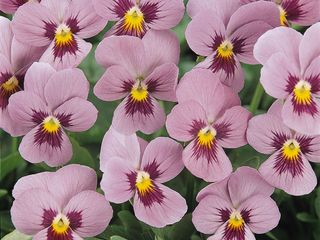 - Miniviole (Viola x wittrockiana): sono Viole del pensiero a fiore medio-piccolo (3-4 cm) a portamento strisciante tappezzante. Sono la migliore varietà di viole per aiuole e prati, fioriscono anche col gelo e resistono molto bene sotto la neve. Ogni pianta porta una grande quantità di fiori che, anche se bagnati, non si piegano e dunque rimangono belli anche dopo la pioggia.