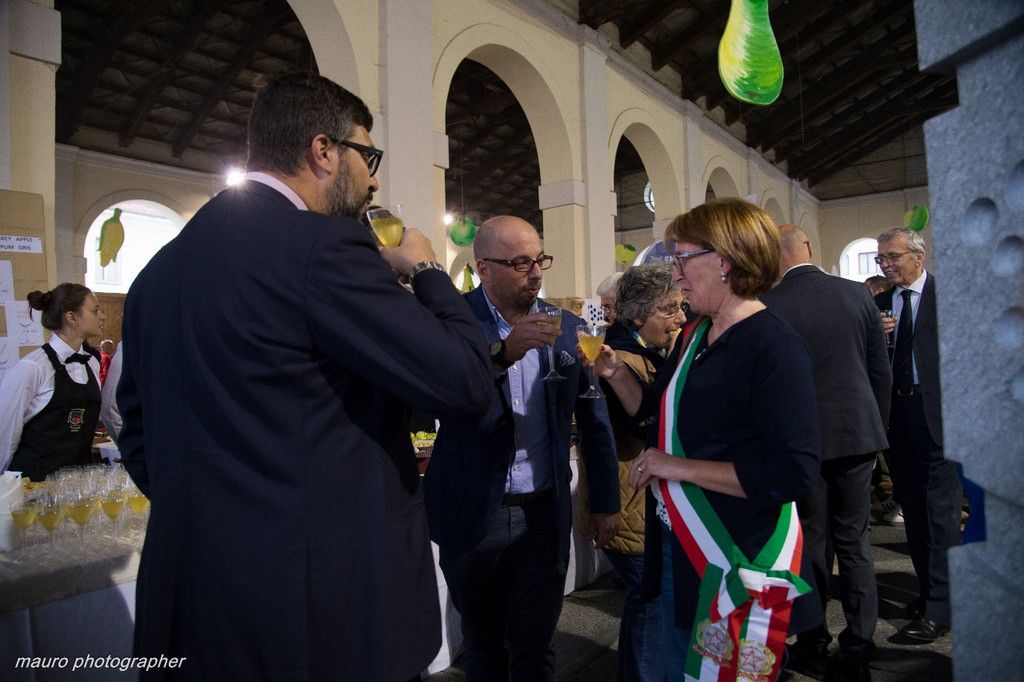 A margine dell’inaugurazione, tour attraverso gli spazi espositivi, con tappa al sontuoso rinfresco allestito dagli studenti dell’Istituto alberghiero di Barge.