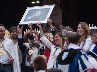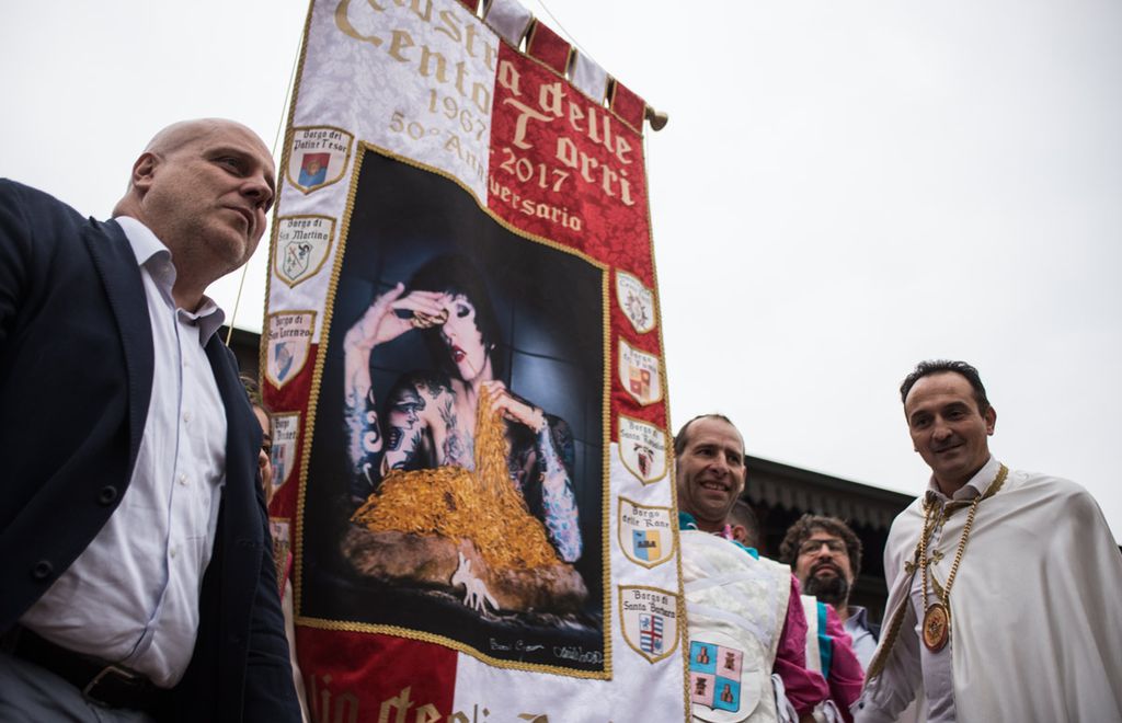 Il Borgo Brichet, con il fantino Silvano Accomo, vince il Palio degli Asini 2017 per la tredicesima volta. A lui va il drappo che quest'anno è stato illustrato dal fotografo dalla fama internazionale Guido Harari, che ha ritratto i celebri tajarin di Gemma in versione rock.