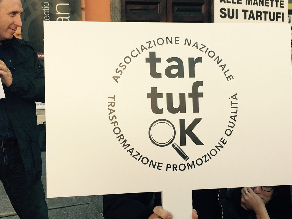E' tempo di Fiera Internazionale del Tartufo Bianco, ad Alba. Ancor prima dell'arrivo delle autorità, Piazza Vittorio Veneto è occupata da una protesta per la protesta sulla nuova legge per il Tartufo.