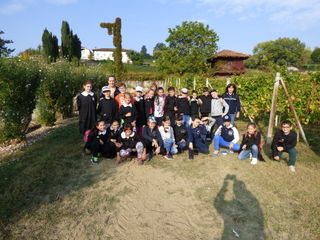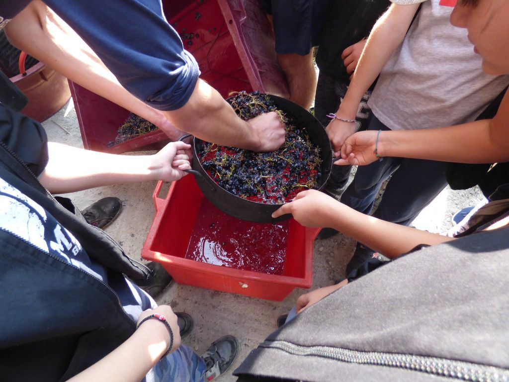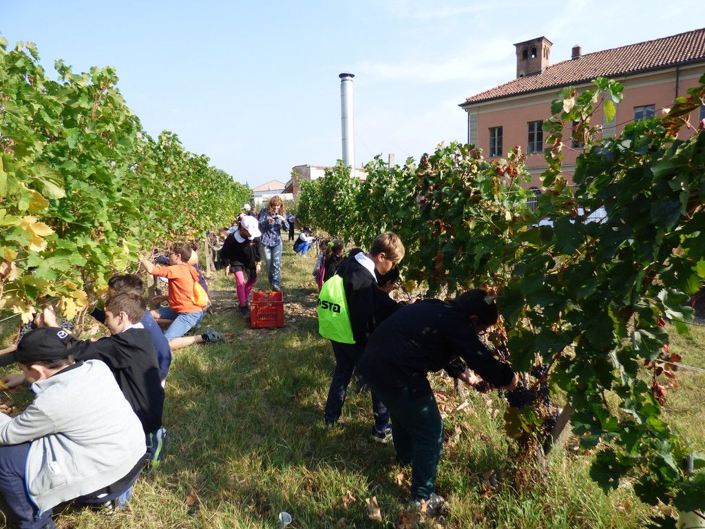 La giornata ha preso avvio con una lezione a cura del docente Renzo Binello che ha illustrato la storia delle scuola, le varietà dei vitigni, la struttura della vite e il processo che caratterizza il vino. Ai piccoli vignaioli sono stati lasciati due filari. Ogni studenti ha così potuto raccogliere i grappoli, assaggiarli, maneggiarli e viverne il profumo misto di terra ed uva. La giornata è proseguita in cantina con la professoressa Ornella Serra che ha mostrato le bottiglie di vino diverse e le modalità con cui comunicare ai consumatori.