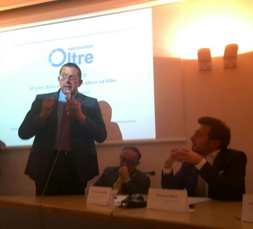 Da Alba è iniziato "Insieme" un cammino già nella prospettiva politico elettorale delle prossime scadenze nazionali e locali e con l'obiettivo di andare "Oltre" i vecchi bipolarismi e i nuovi populismi. In questa variegata ottica ha confermato la propria straordinaria attualità e vitalità la lezione politica e morale in cui consiste l'eredità di Aldo Moro, lo statista cattolico che cadde vittima nel 1978 della barbarie terroristica e di cui si è celebrato, lo scorso sabato in Alba, il cinquantesimo anniversario della visita che egli svolse nel 1967 in veste di capo del governo dell'epoca. La sede è stata quella del convegno realizzato dall'associazione culturale "Oltre", presieduta dal consigliere comunale Emanuele Bolla, con la partecipazione di "Insieme", il rilevante sodalizio cuneese facente capo al professor Giovanni Quaglia, intervenuto assieme allo storico Sergio Soave, al presidente Antonio Miglio, al professor Piercarlo Rovera e all'avvocato Alberto Rizzo.