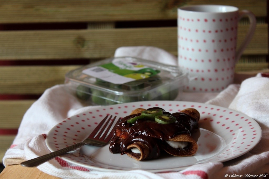 Per prima cosa si prepara la coulis di NERGI®. Lavare e tagliare a metà i NERGI® e farli appassire in un pentolino antiaderente a fuoco dolce, in modo da far tirare fuori ai frutti la propria acqua, per circa 5 min. Aggiungere lo zucchero a velo e il succo di limone e mescolare bene con una frusta. Filtrare il composto con un colino a maglie fitte per eliminare i semini e ottenere il succo. Versare lo yogurt greco in una ciotola capiente e renderlo cremoso sbattendo con una frusta a mano per pochi minuti. Unire il succo di NERGI® e amalgamare bene il tutto, ponendo poi lo yogurt (coperto con un coperchio) in frigorifero. In una bottiglia di plastica pulita (da almeno 750 ml), versare il latte, le farine (precedentemente mescolate insieme), lo zucchero, il cacao, l’uovo e l’olio, quindi chiudere la bottiglia e shackerare bene per ottenere un composto omogeneo e senza grumi. Cuocere le crepes in un padellino antiaderente leggermente oliato, versando poco per volta il composto. Farcire ogni crepe con un cucchiaio di yogurt al NERGI®, richiuderla a metà e posare su un piatto da portata. Sciogliere a bagnomaria il cioccolato exrafondente con il latte e poi spargerlo sulle crepes farcite. Decorare con rondelle di NERGI®.