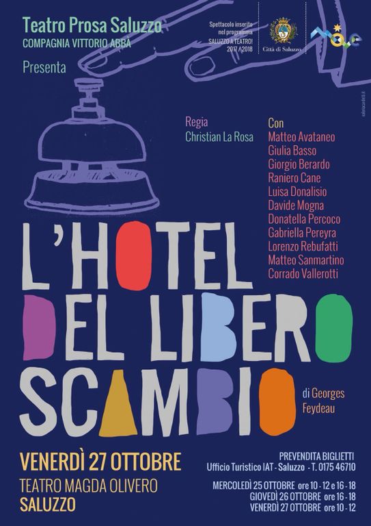 Il Teatro prosa Saluzzo, Compagnia Vittorio Abbà, porta in scena venerdì 27 ottobre al teatro Magda Olivero la commedia “Hotel del libero scambio” di Georges Feydeau, regia di Christian La Rosa.