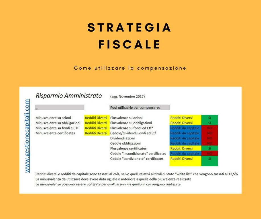 Con l'innalzamento dell'imposta su capital gain al 26% è diventato ancora più importante attuare una corretta strategia fiscale, da condividere con un professionista di fiducia. Facendo però attenzione a non stravolgere l'allocazione complessiva del portafoglio, che è comunque la cosa più importante.