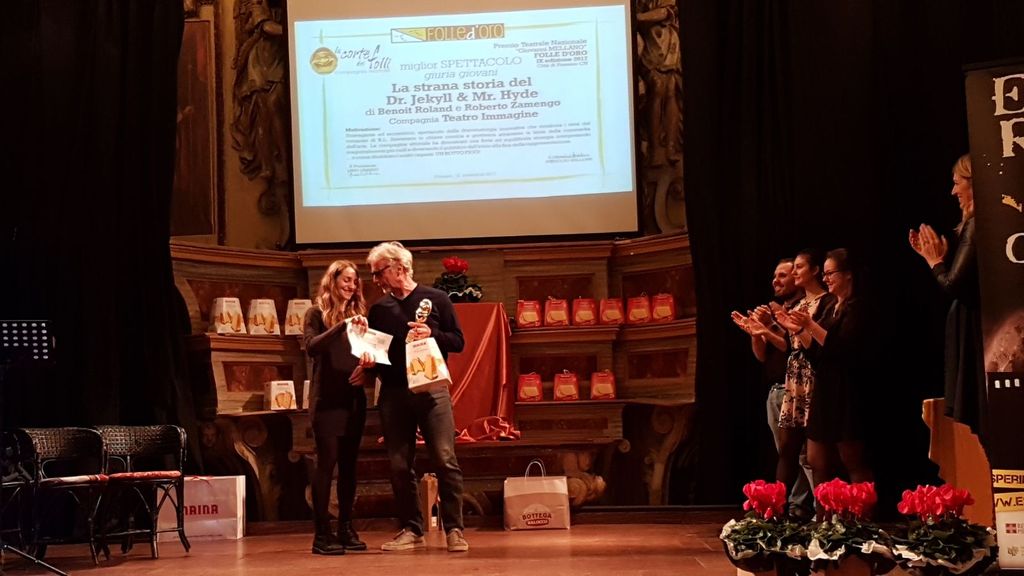 Tra le cinque compagnie in scena, tra le oltre 80 che hanno presentato domanda di partecipazione, la giuria giovani ha consegnato il premio per il miglior spettacolo a “La strana storia del dottor Jekyll e Mr. Hide” scritto e diretto da Benoit Roland e Roberto Zamengo della Compagnia Teatroimmagine di Salzano (VE): “Stravagante ed eccentrico: spettacolo della drammaturgia innovativa che rielabora i temi del romanzo di R. L. Stevenson in chiave comica e grottesca attraverso la lente della commedia dell’arte. La compagnia attoriale ha dimostrato una forte ed equilibrata sinergia interpretando magistralmente più ruoli e divertendo il pubblico dall’inizio alla fine della rappresentazione… e come direbbero i nostri ragazzi: un botto figo!”.