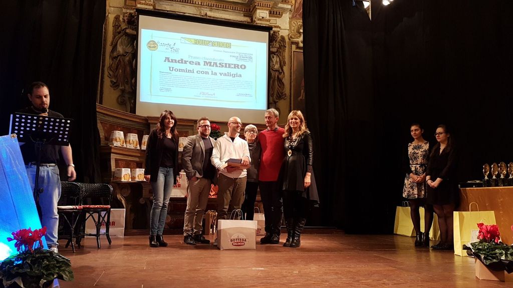 Terzo gradino del podio per Fabrizio Meini con “La ragazza dello swing” con il suo impetuoso dialetto toscano e le canzoni degli anni ’40. Al secondo posto “Trentanove” di Maria Angela Raineri, struggente testo che “esplora i pensieri di una quattordicenne lacerata dalla separazione dei genitori” nel confine tra i 39 e i 40 chili di un’anoressica. Gradino più alto del podio per Andrea Masiero con il suo “Uomini con la valigia”, un monologo che tocca pensieri profondi, anche con leggerezza mentre il protagonista siede in una sala d’aspetto.