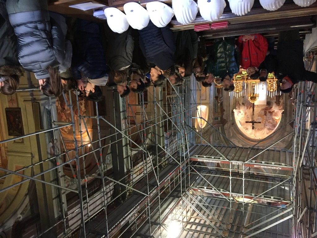 L'attività di Cantiere Aperto ha consentito agli studenti, approfittando ancora per poco della presenza dei ponteggi, di ammirare da vicino le opere pittoriche, approfondendo la conoscenza delle diverse fasi di lavorazione proprie di un cantiere di restauro, anche attraverso la visione di immagini che rappresentano il manufatto prima dell'intervento.