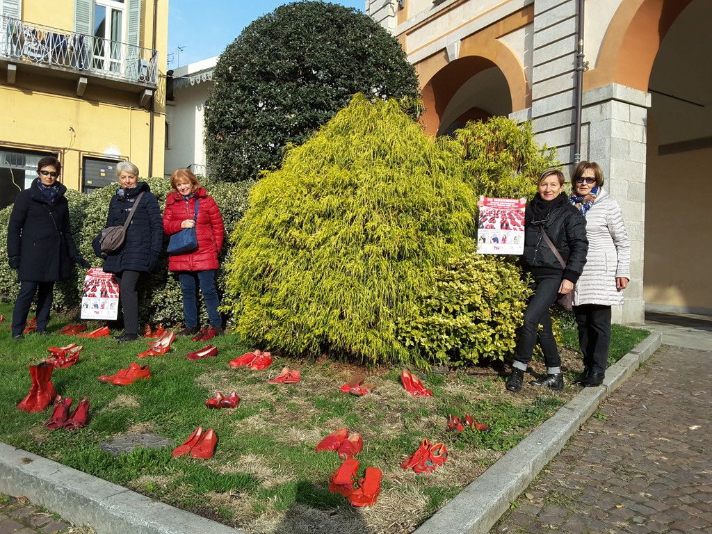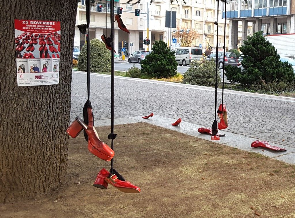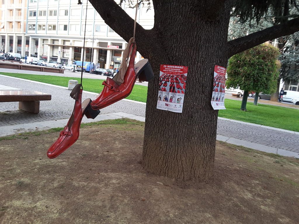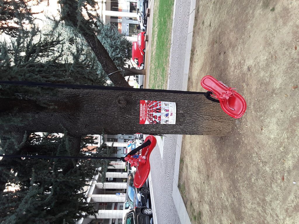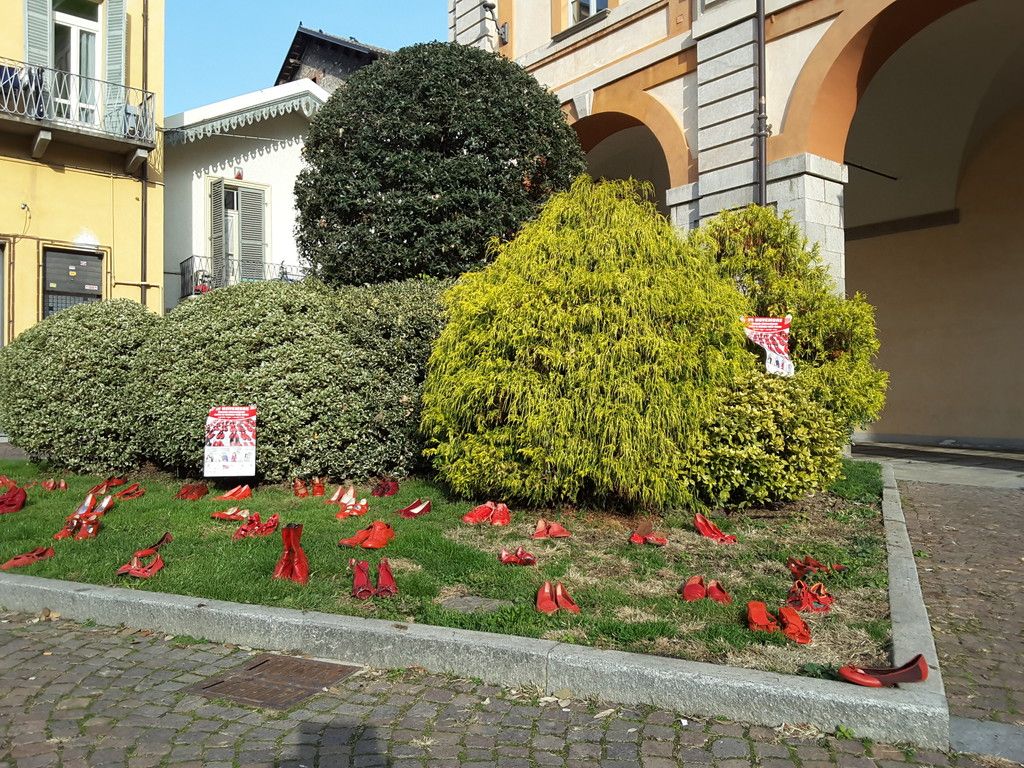 Ecco le foto delle scarpe rosse, simbolo della manifestazione, in mostra per la città di Cuneo