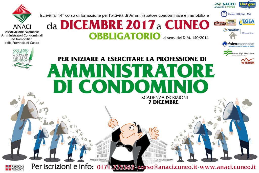 L’ANACI di Cuneo in collaborazione con il Collegio dei Geometri di Mondovì ha organizzato il 14° corso di formazione ai sensi del D.M. 140/2014 per chi vuole intraprendere la professione di amministratore di condominio.