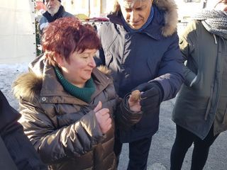 L'elicicoltore Gabriella Girello di Borgo San Dalmazzo è stata premiata per la sua costanza: da 15 anni partecipa infatti al mercato della lumaca con le sue chiocciole.